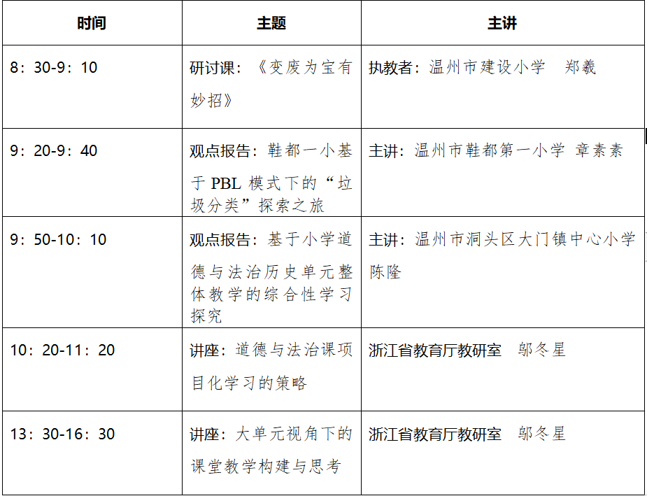 为了深刻落实道德与法治课立德树人根本任务,为了课堂变革,提高学员的课堂教学能力和教材解读能力,帮助学员在教学中对教材单元整体的解读意识。经研究,决定开展“大单元视角下的教学构建”活动暨温州市黄又绿名师工作室第三十六次活动。现就有关事项通知如下: