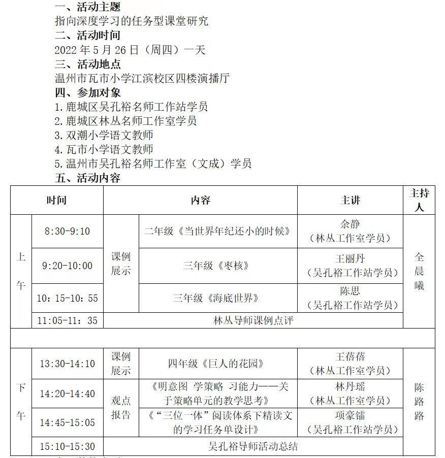 关于举行温州市吴孔裕“名师送教”工作室第7次活动的通知