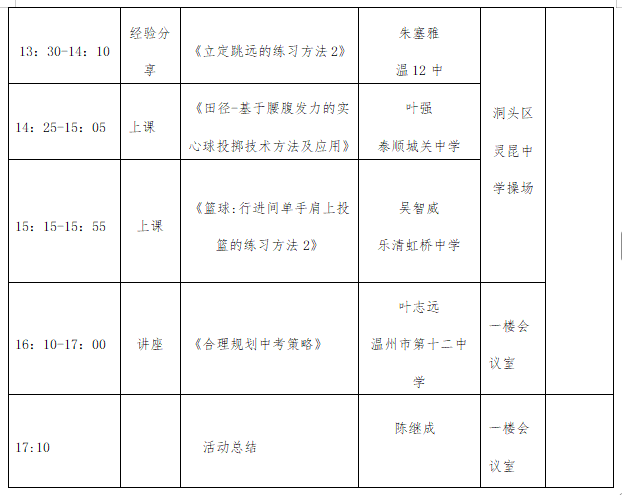 1.活动要求全区初中体育教师参与,因事无法参加需提前请假;