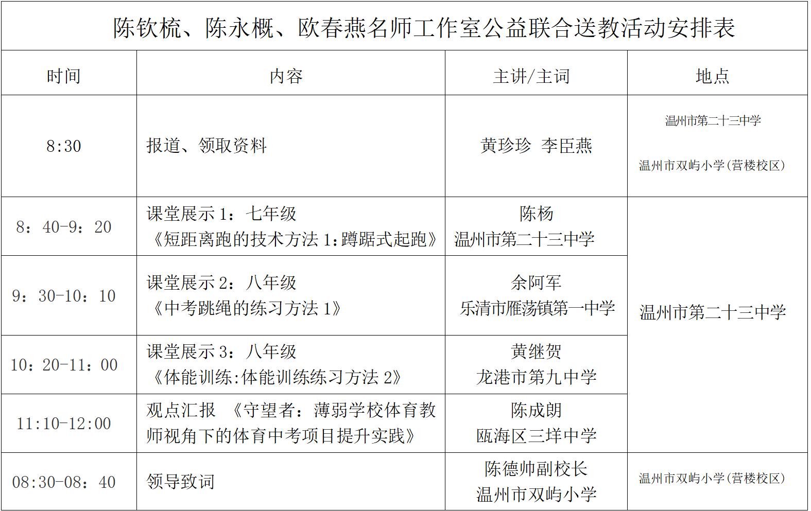 关于举行温州市陈永概“名师送教”工作室第四次活动的通知