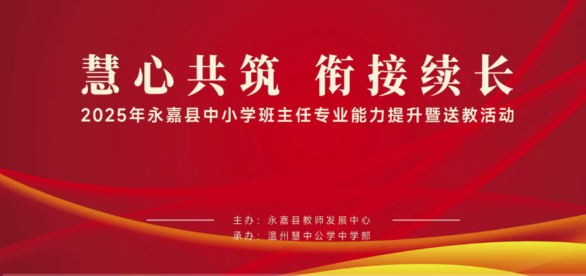 为深入贯彻党的教育方针,积极推进班主任队伍的建设与发展,提升班主任的素养与教育能力,建构更加积极和谐的教育生态,促进青少年的全面健康成长,并推动优质教育资源的互补与分享,永嘉县教育发展中心举行了“慧心共筑,衔接续长”——2025年永嘉县忠孝雪班主任能力提升暨送教活动。