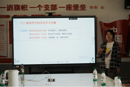 最后,云周中学的林晨晨老师分享作业设计案例《解说达人—繁荣与开发的隋唐》。林老师从作业现状、生活实际难题出发,设计了历史文物解说作业。林老师更是利用学生空余时间进行解说布置,充分激发学生的积极性,促进学生任务高质量完成。